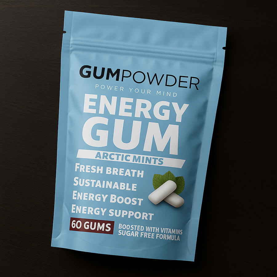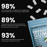 GUMPOWDER stimule naturellement votre vigilance, votre énergie mentale et votre concentration, grâce à une formule à base de caféine naturelle, vitamine B6 et vitamine B12.